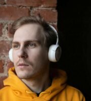 White venetian blinds cover a large window, allowing a diffused light to enter the room. A tall green plant stands beside the window, its leaves reaching towards the blinds. A bicycle seat is visible in the lower left corner, next to a small container of oil or glue. The ambiance is calm and tidy.